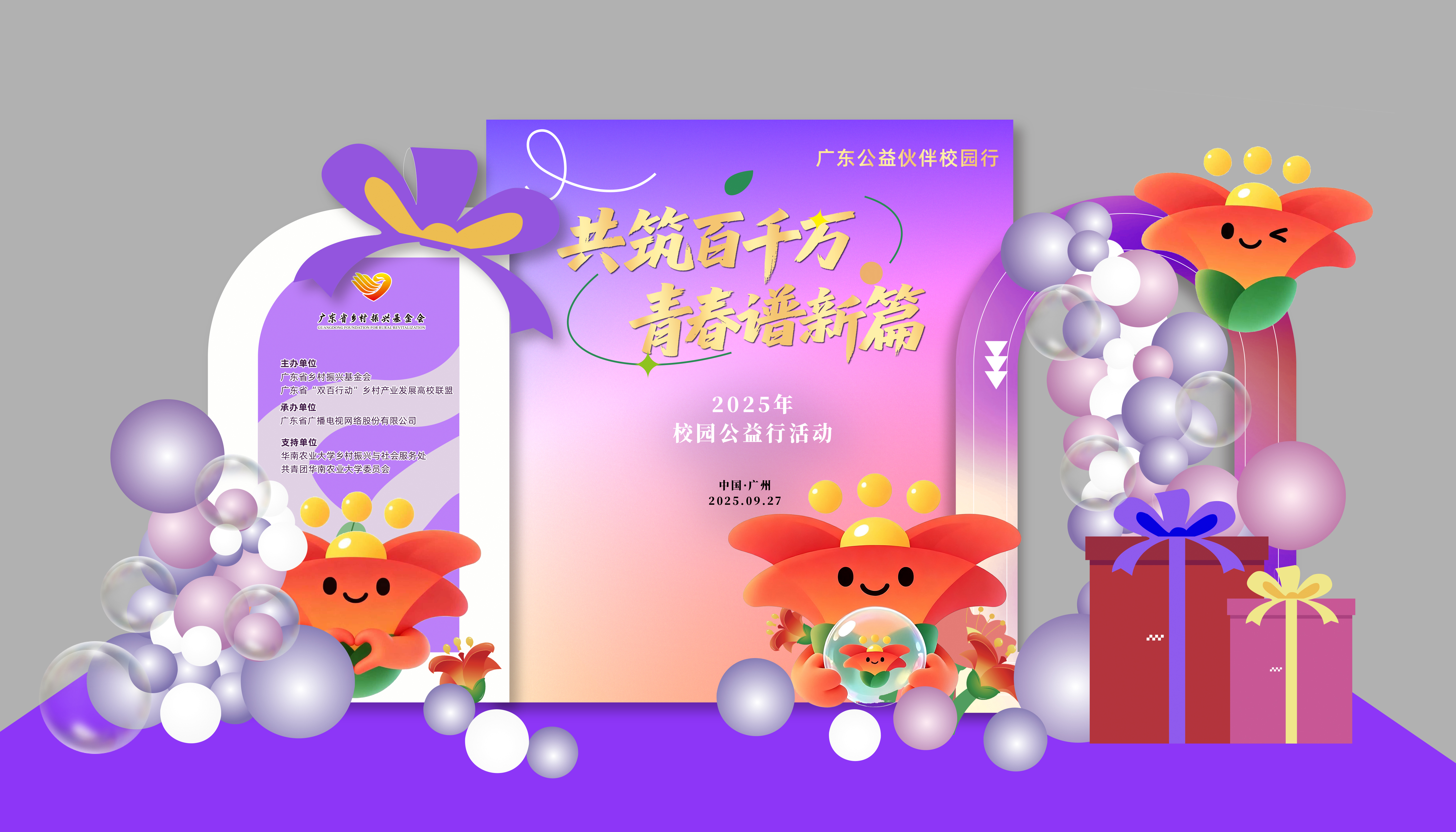 为积极响应“百千万工程”的号召,凝聚青春力量助力乡村振兴,由广东省乡村振兴基金会、广东省“双百行动”乡村产业发展高校联盟联合主办,华南农业大学乡村振兴与社会服务处、共青团华南农业大学委员会支持开展的“共筑百千万 青春谱新篇”广东公益伙伴校园行活动,将于2025年9月27日在华南农业大学华山运动场举行。